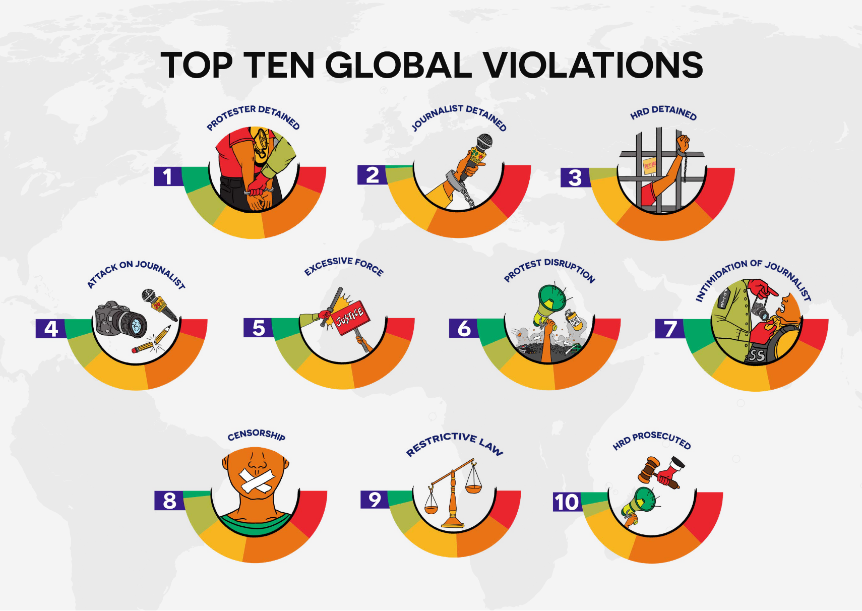 Alongside this, the global findings chapter on tactics of repression notes that between January and April 2025 at least 41 US states introduced bills imposing new restrictions on protests. At federal level, authorities are using the Catch and Revoke programme — a joint initiative of the Department of Homeland Security, Department of Justice and State Department — to deploy artificial intelligence to monitor the social media of thousands of student visa–holders for perceived sympathy with Hamas or other designated groups.